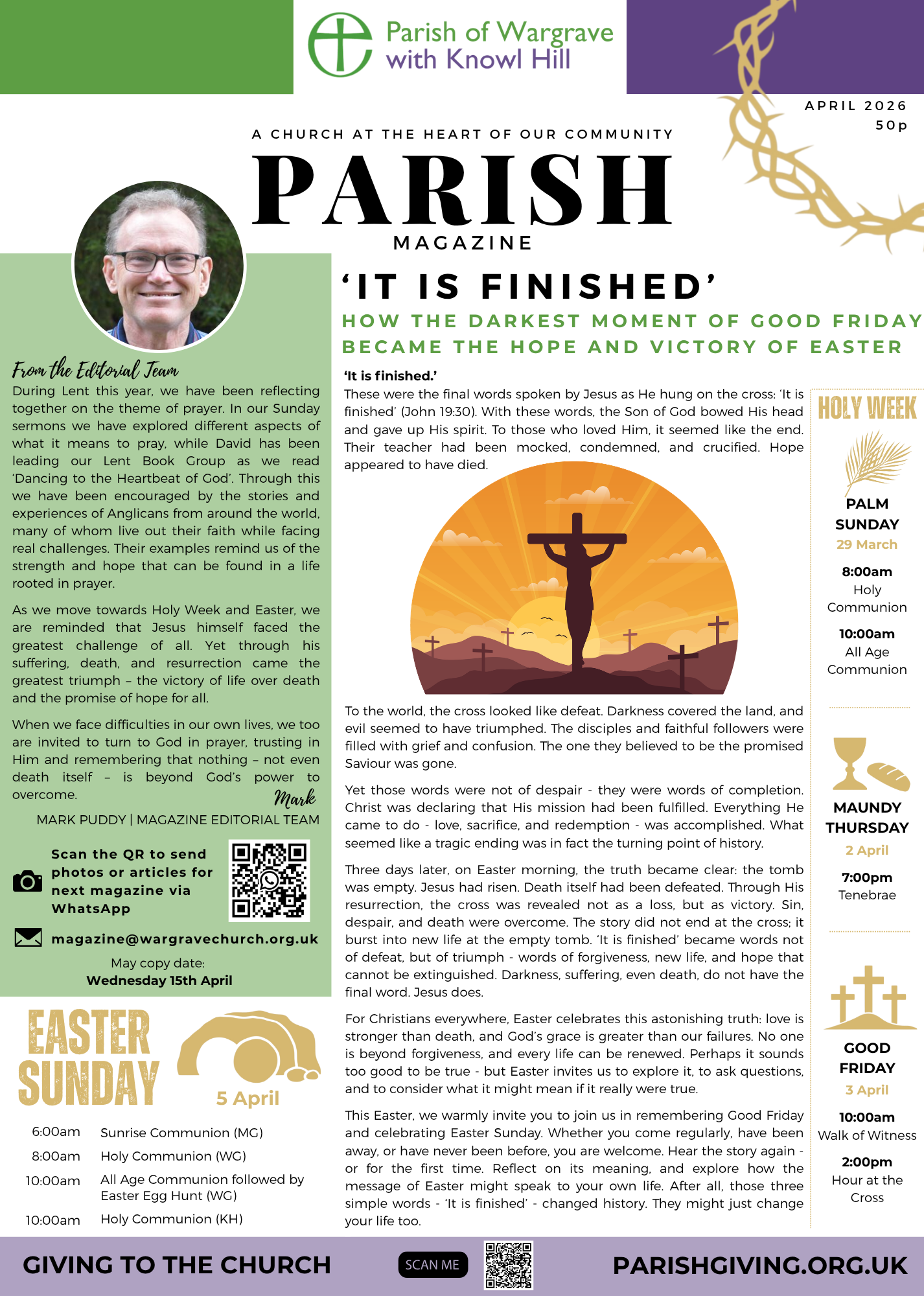 Our Parish Magazine is the heartbeat of our church and community, bringing people together through news, reflections, and updates. Published ten times a year (excluding January and August), it’s your go-to guide for everything happening in the Parish.